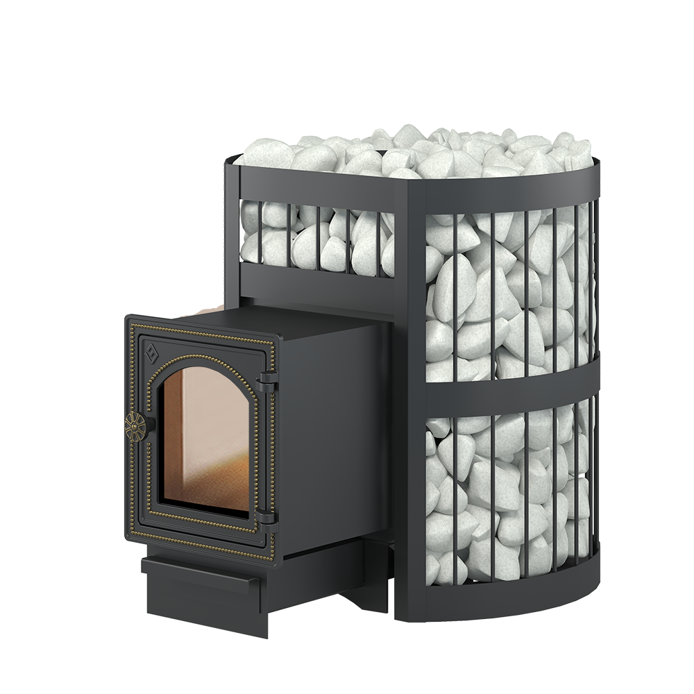 Большая масса закладываемых камней, примерно 120 кг., обеспечивает большое количество пара и длительное остывание печи.