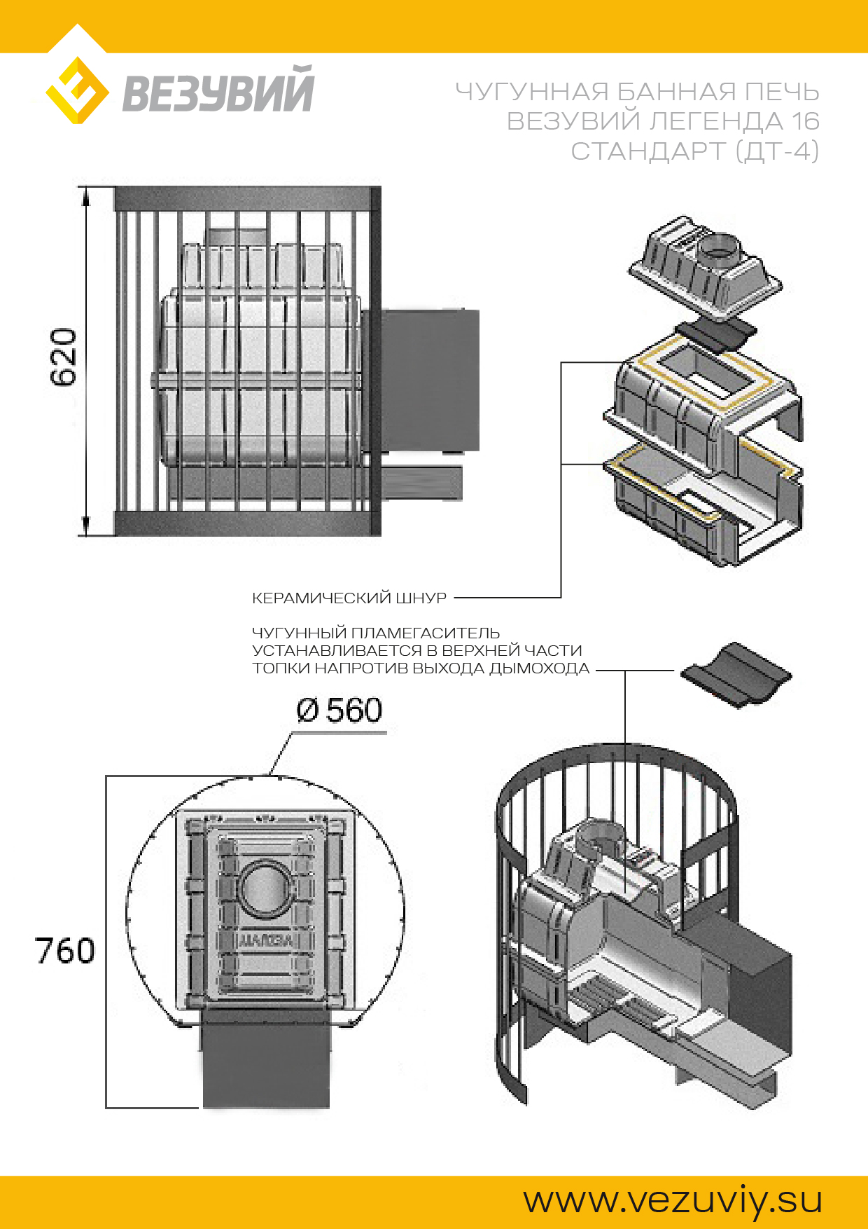 Банная печь Везувий Легенда Стандарт 16 подходит для парного помещения объёмом до 16 кубометров.
